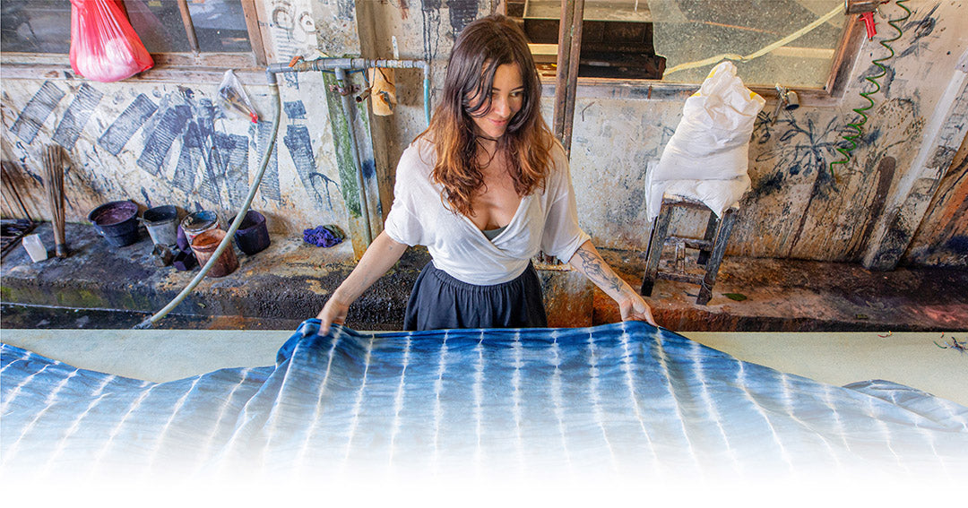 In Isabelle Moon, we use natural, non synthetic fabrics for all our collections whether it’s yoga or lifestyle. You can look up the fabric details in the product description for each product. We work with family-owned and local businesses in Bali for our natural dye and manufacturing. It's amazing to see how they've grown as businesses. It's my goal to always support and grow local businesses.