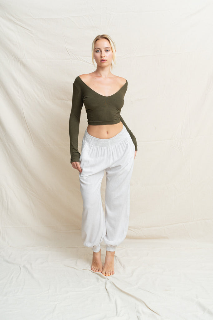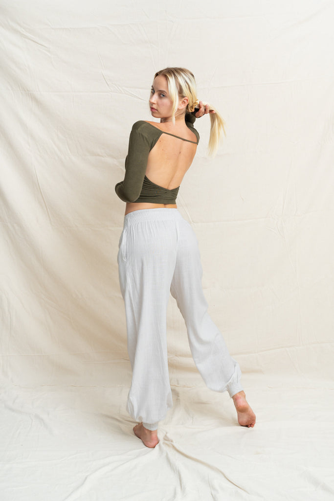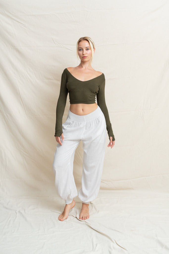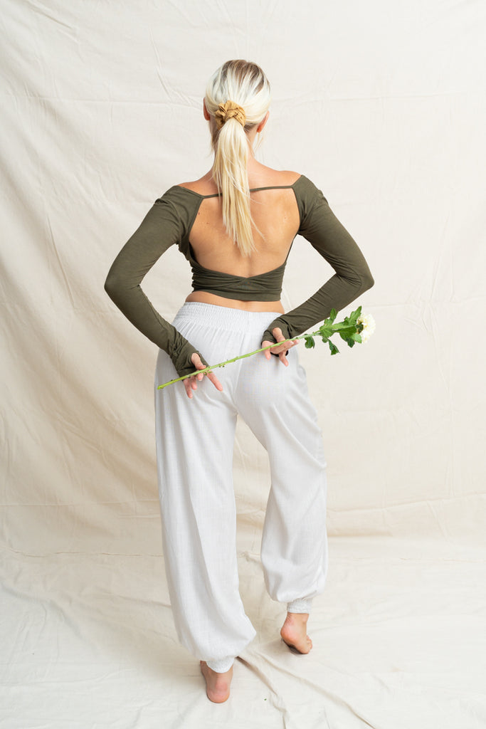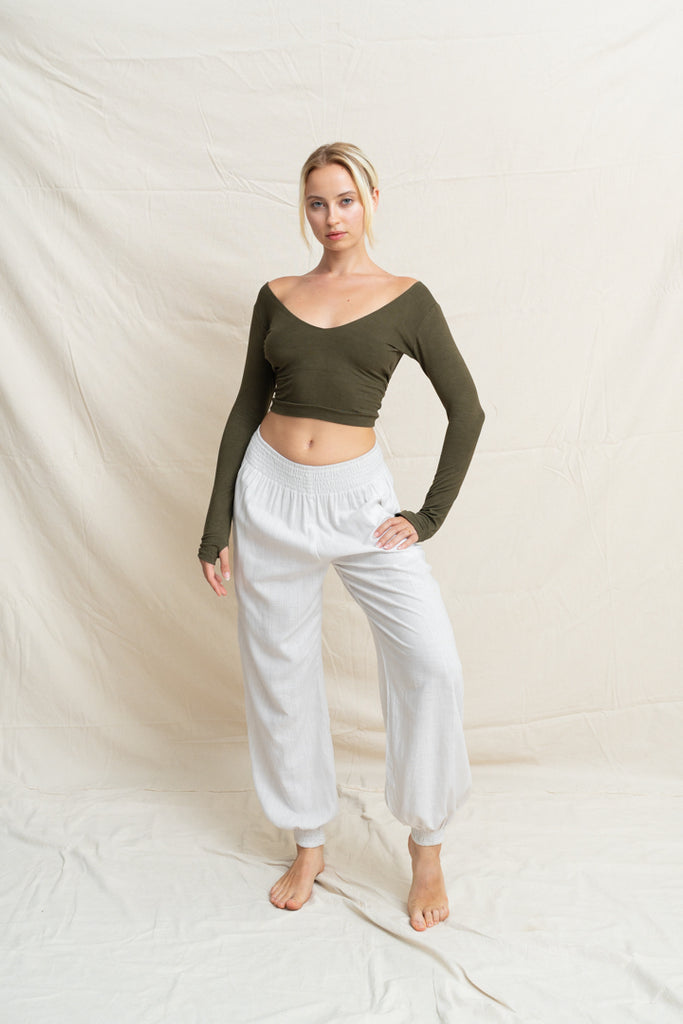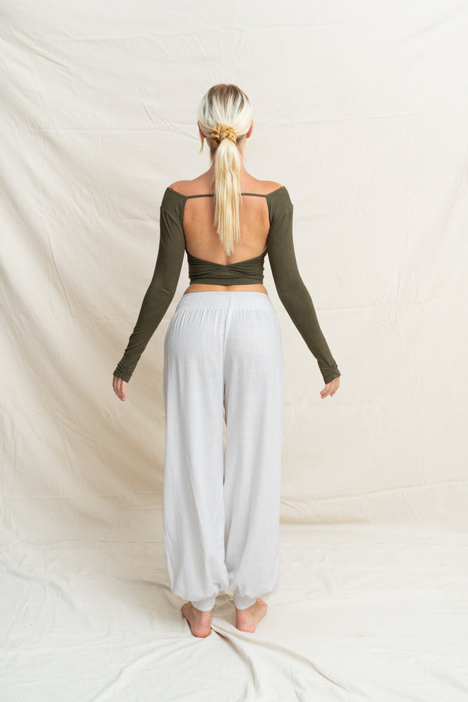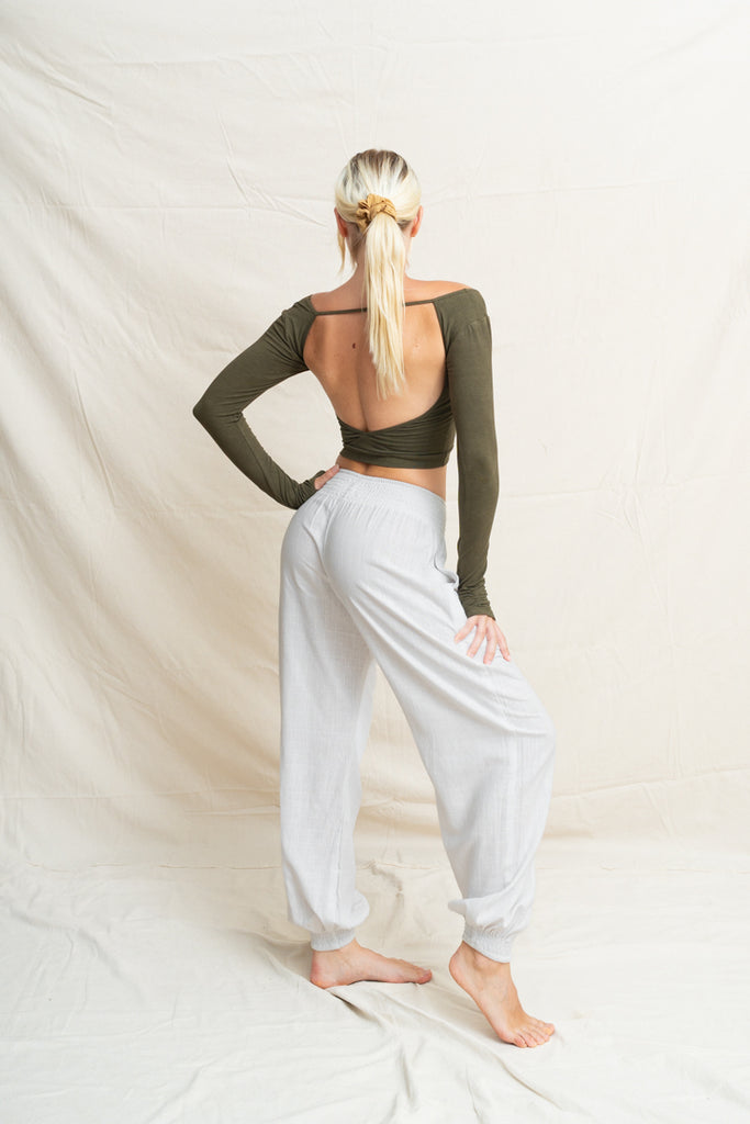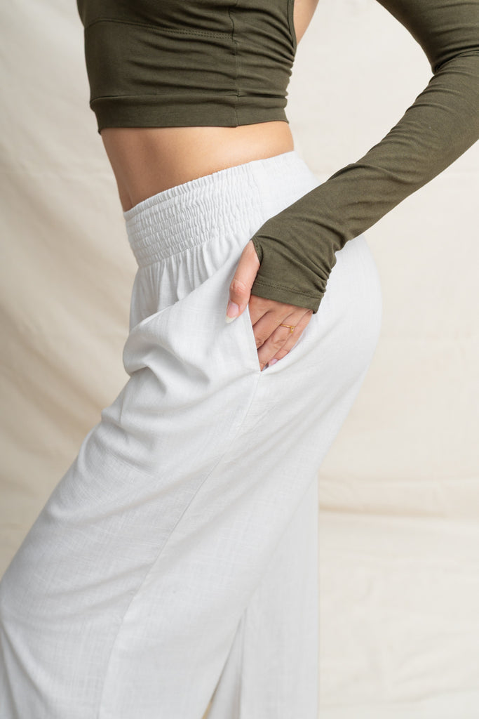 Linéa Linen Tether Pants are designed to move with you, from morning rituals to moonlit stretches. Their smooth (fabric) blend feels like a second skin: soft, breathable, and gently supportive. With a flexible waistline and tapered leg, they offer the perfect balance between structure and ease, flattering your shape while giving you freedom to move, flow, and breathe.