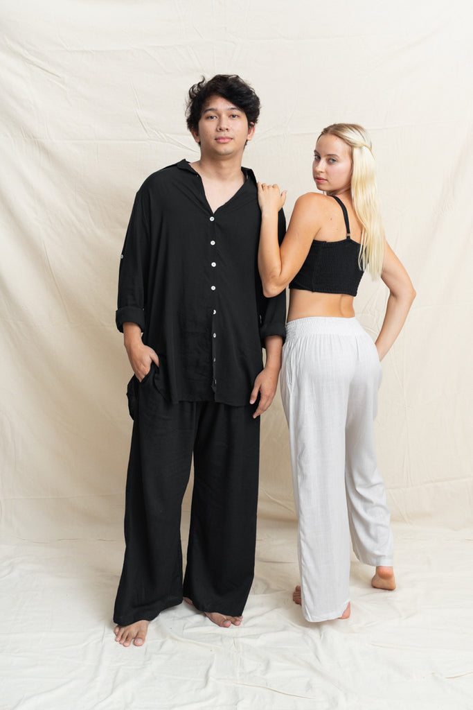 Linéa Linen Drift Pants are your invitation to unwind. Made from airy linen, they drape like a soft whisper against your skin; elegant, fluid, cooling, and effortlessly feminine. With a flexible and relaxed wide-leg silhouette lets you find your perfect fit. Whether you’re lounging at home, grabbing coffee with friends, or walking barefoot through the garden, they move gently with your rhythm..